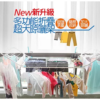 X型折疊不鏽鋼伸縮衣架和曬衣網架兼具使用方便且可摺疊收納,可晾曬棉被、大型衣物和毛線針織冬衣等,適用租屋一族和小家庭。