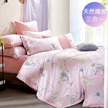 【eyah宜雅】天然木漿纖維棉麻三合一舒適雙人特大七件式床罩組-暖之粉